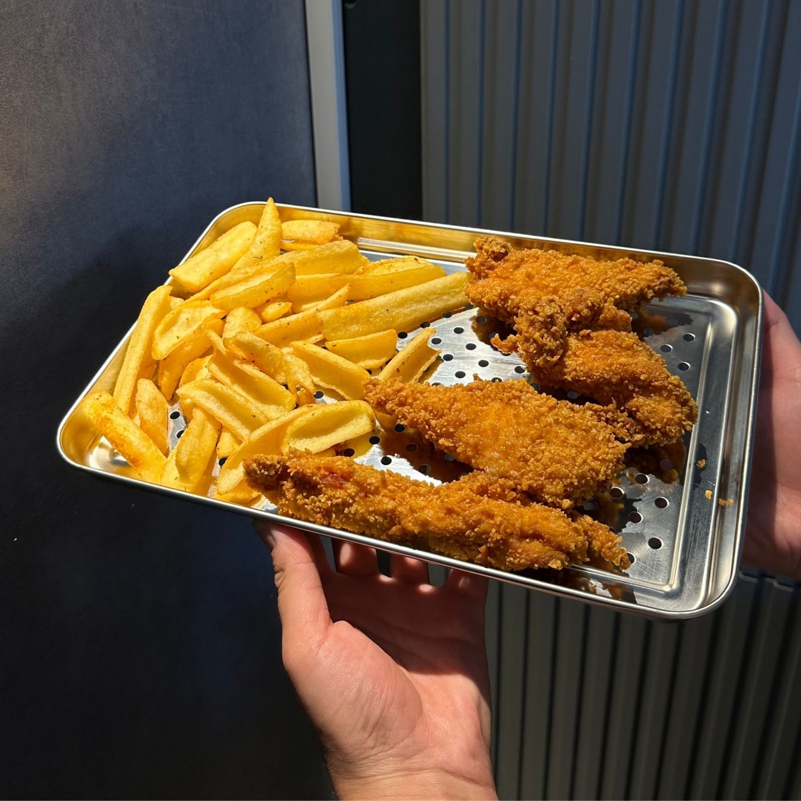 300 gr. acılı çıtır tavuk kanatları, patates kızartması